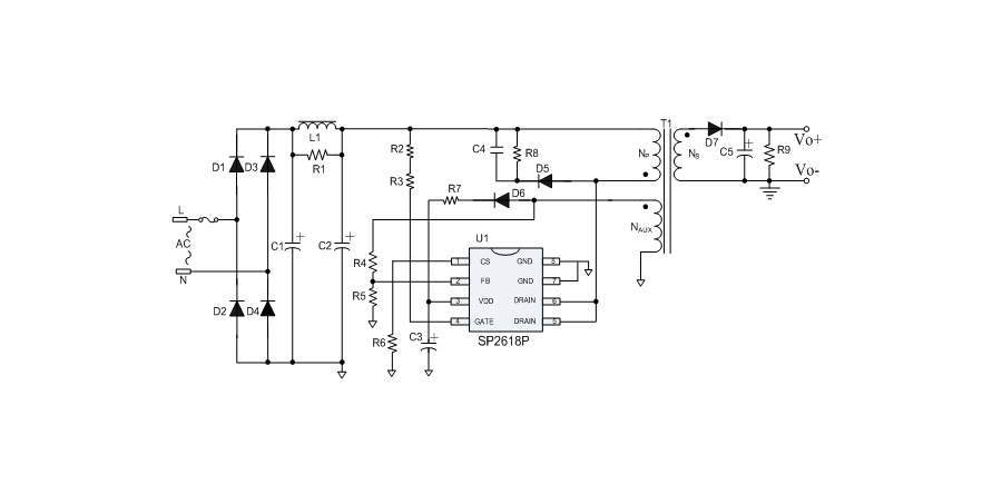 SP2618P是一款性能優(yōu)異的原邊反饋控制電路,應(yīng)用于小功率AC/DC充電器與適配器。控制電路使用原邊采樣技術(shù)進(jìn)行精確的恒流、恒壓控制,可以省去一般應(yīng)用中的光耦與TL431。